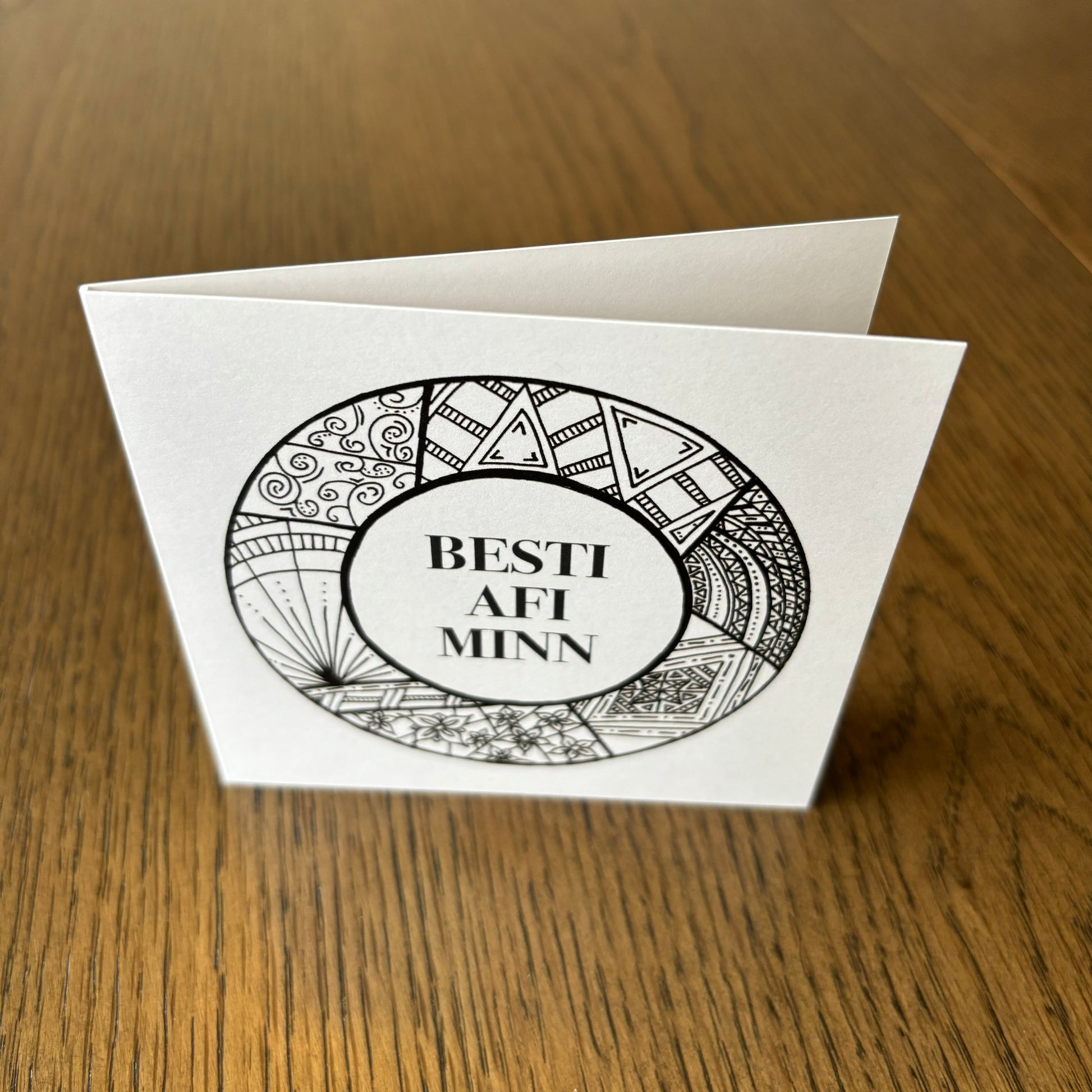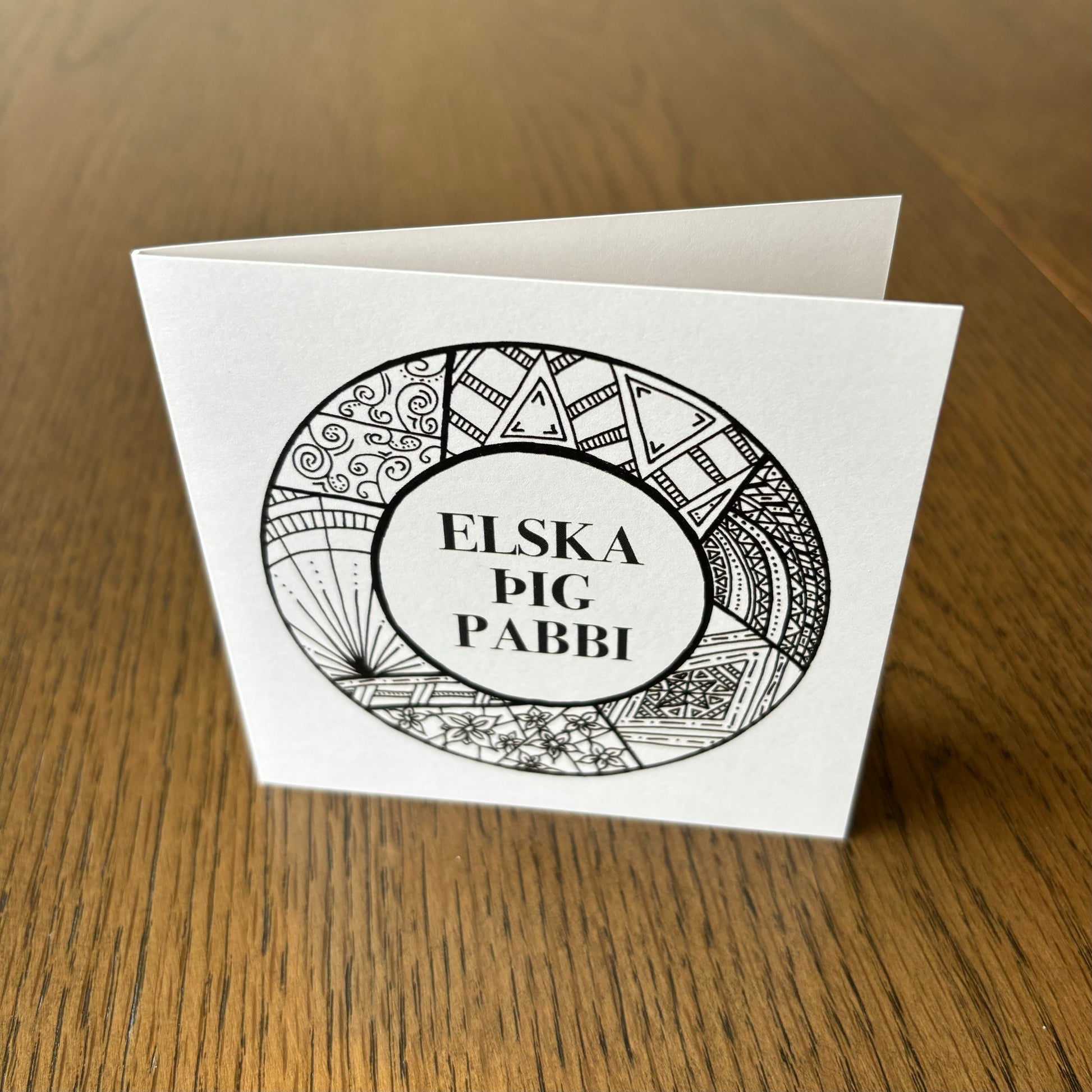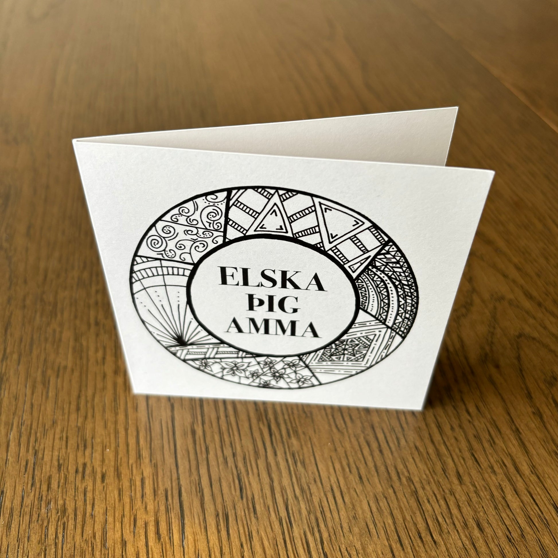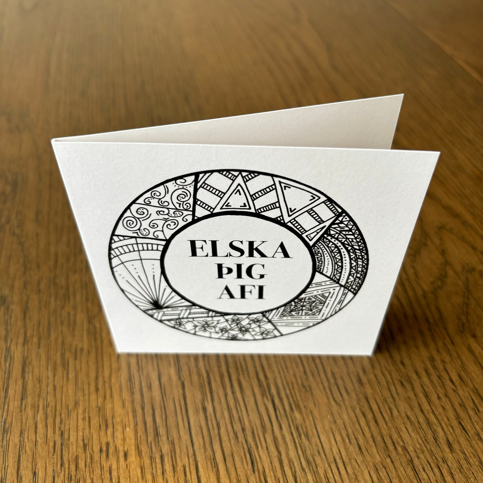 Kortið kemur með umslagi og er í stærð 10,5 x 10,5 cm.