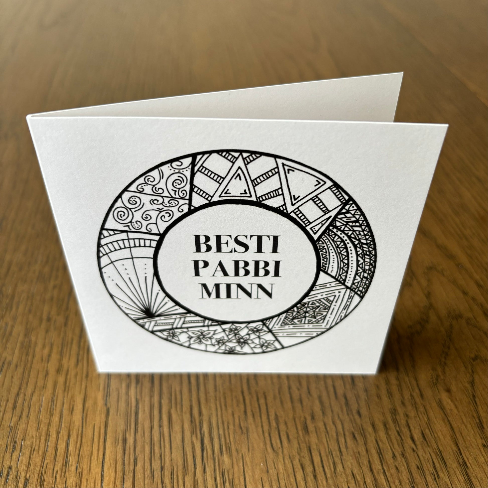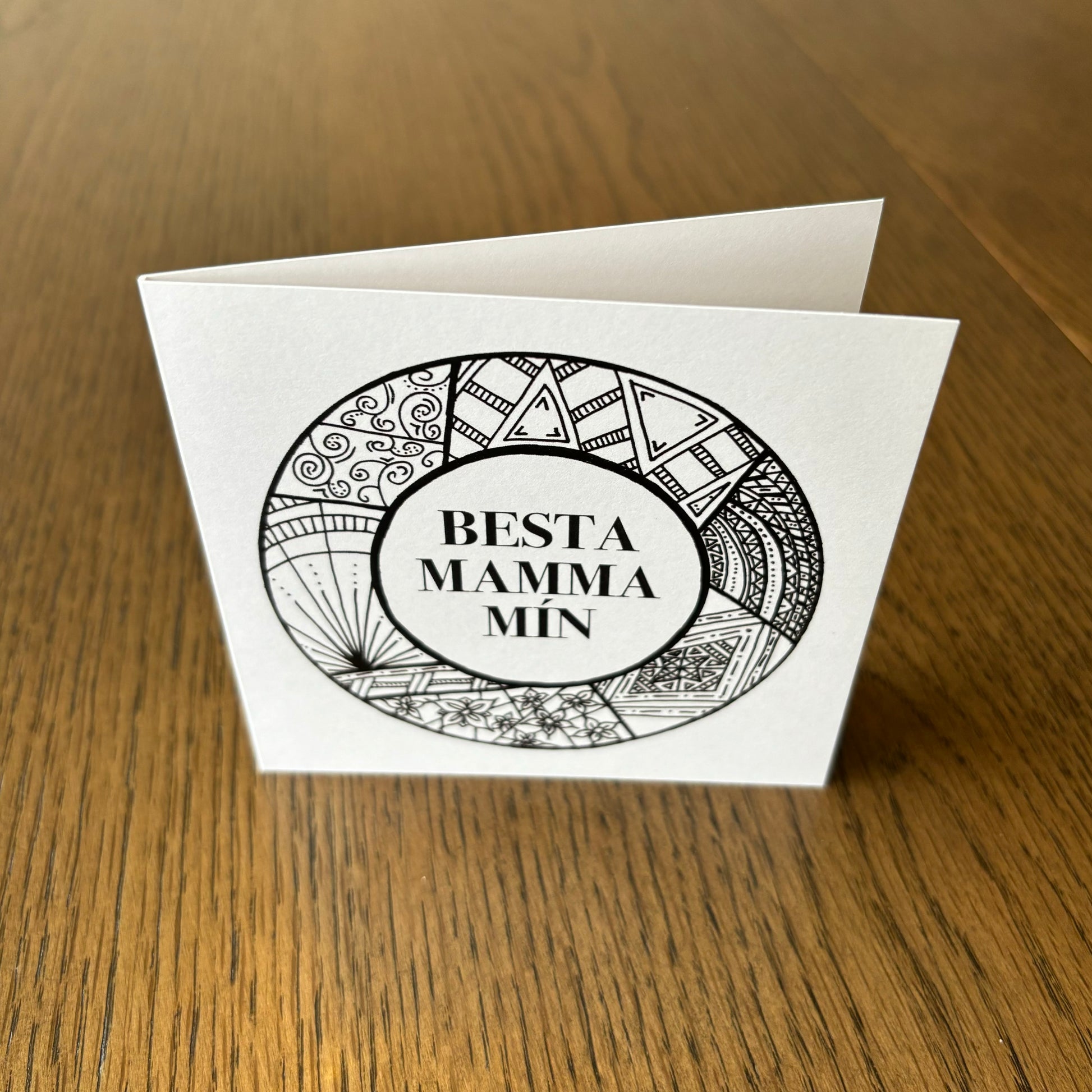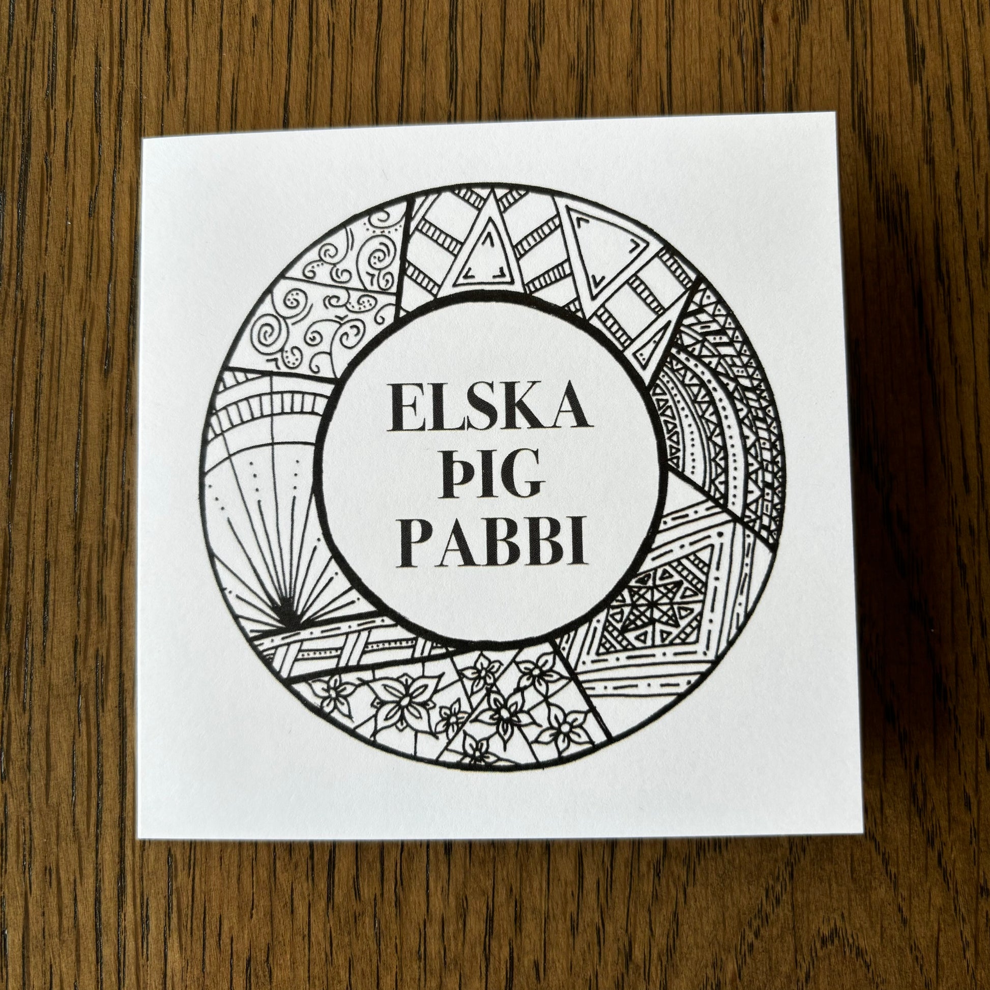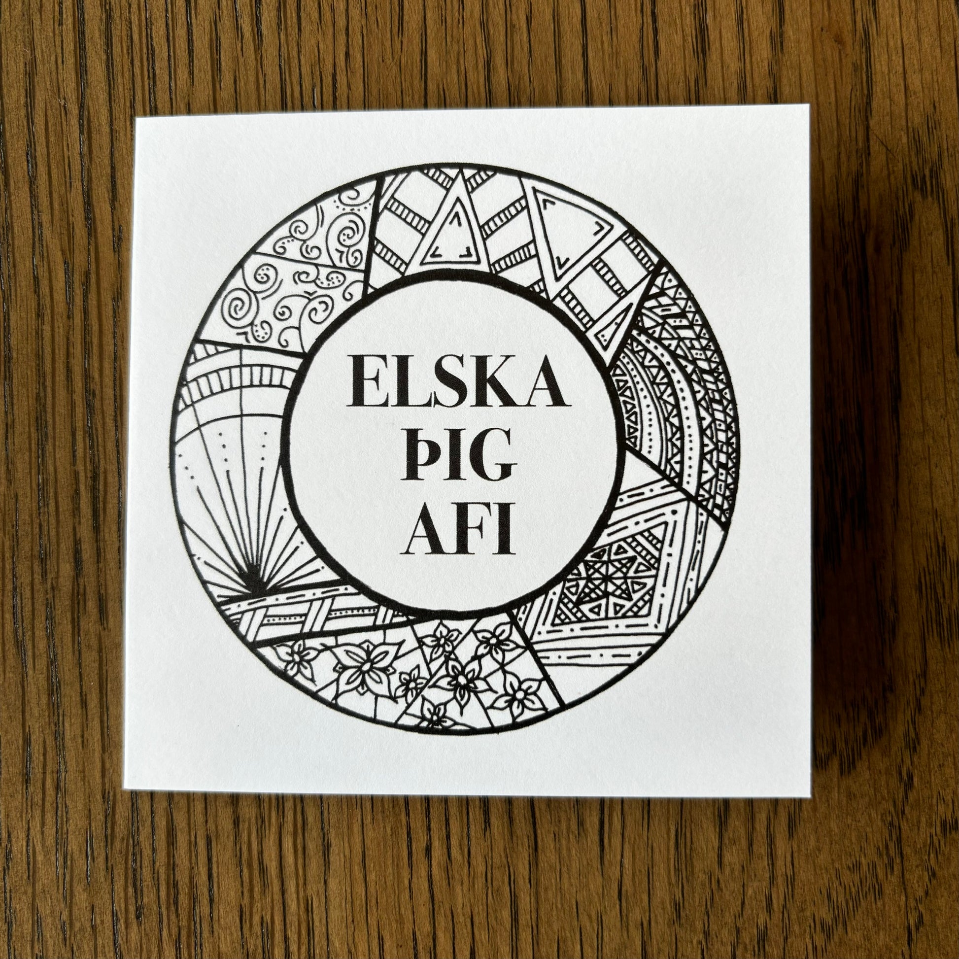 Kortið kemur með umslagi og er í stærð 10,5 x 10,5 cm.