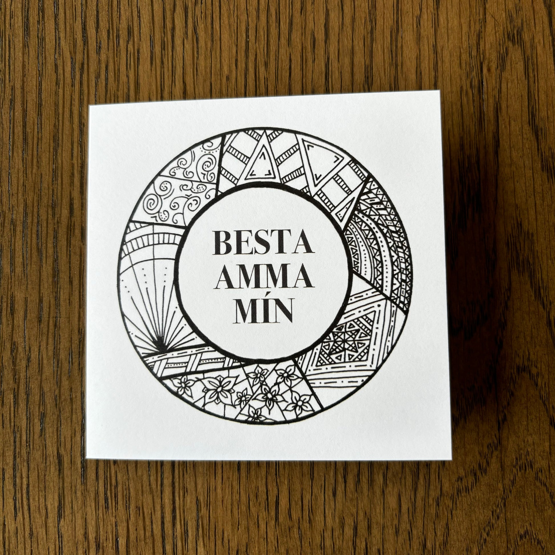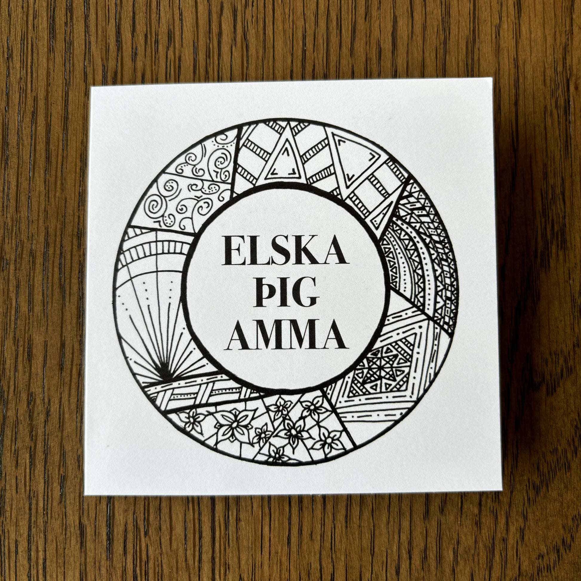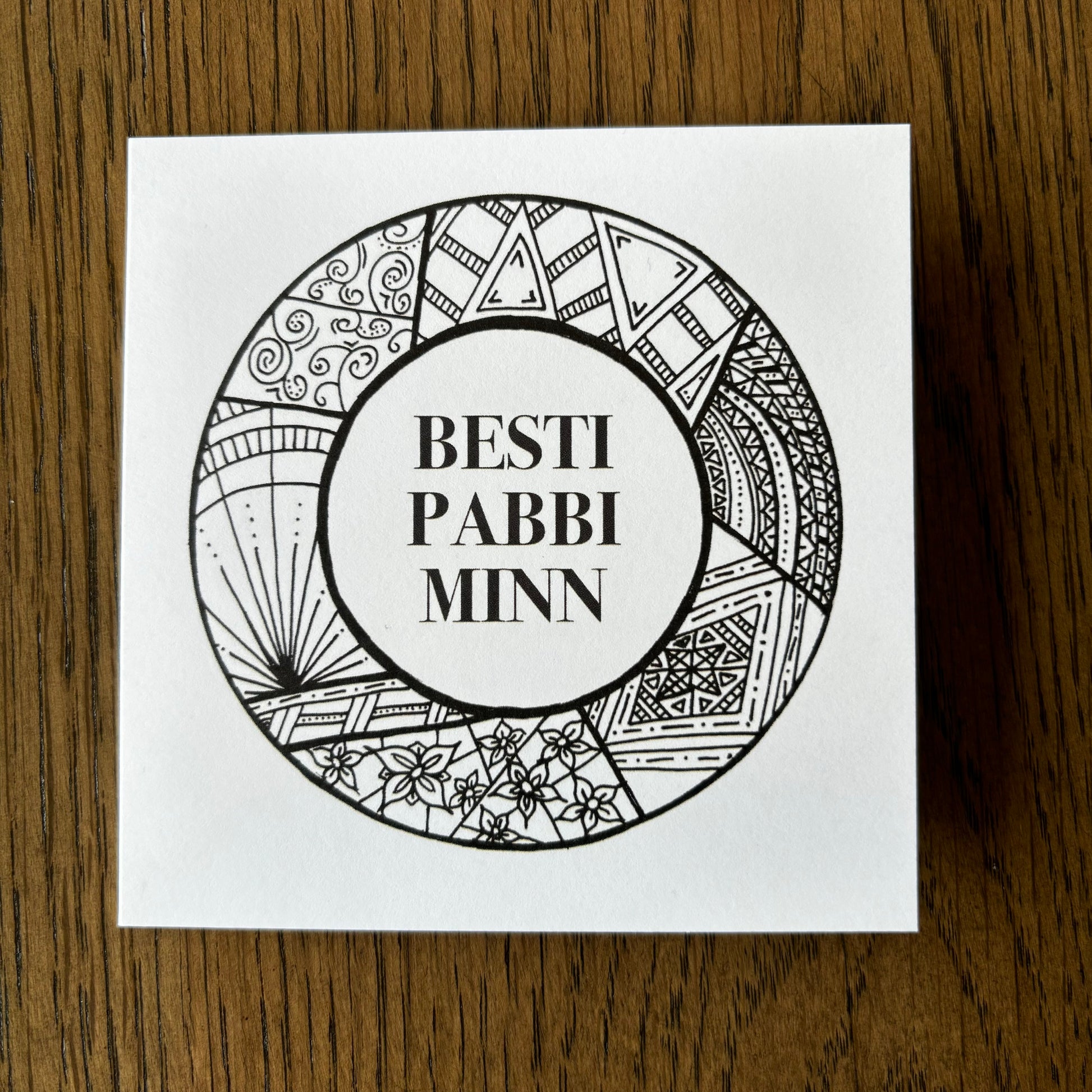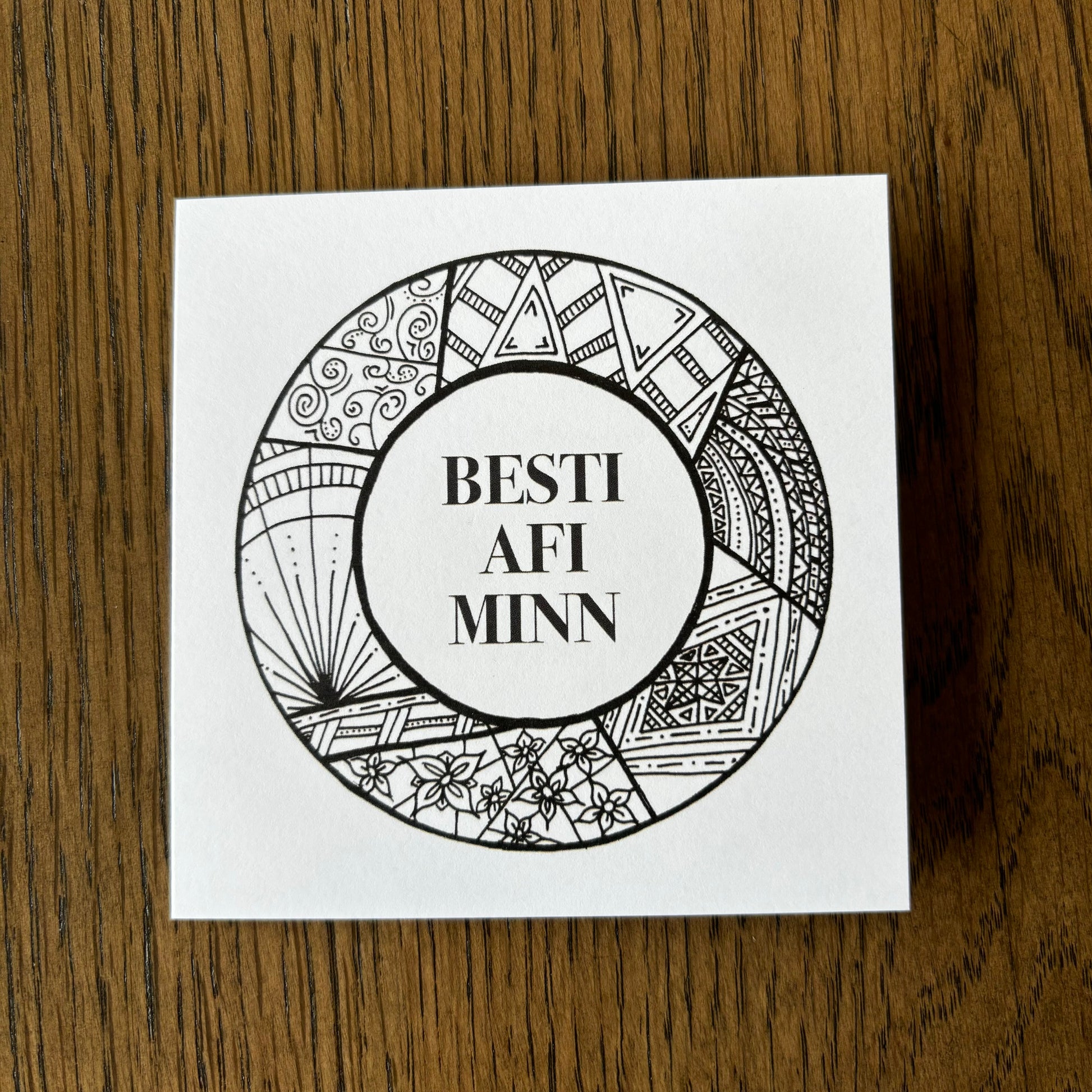 Kortið kemur með umslagi og er í stærð 10,5 x 10,5 cm.
